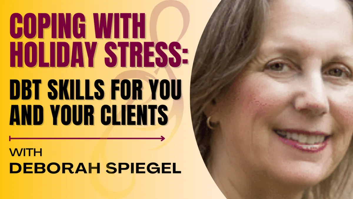 The holiday season can be stressful—for both therapists and clients. This 50-minute session provides you with powerful DBT techniques to help you and those you support navigate the season with more peace and balance.